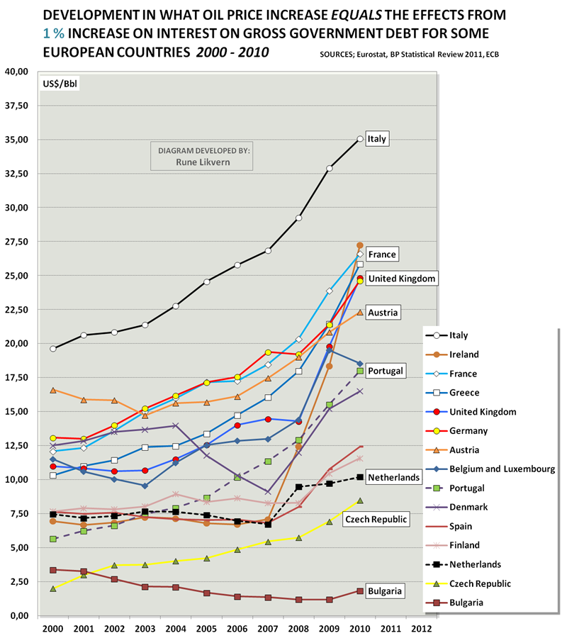 Kombinasjonen av høyere oljepris, voksende total gjeldsgrad og renter resulterte i et fallende oljeforbruk for mange av OECD landene fra rundt 2007.