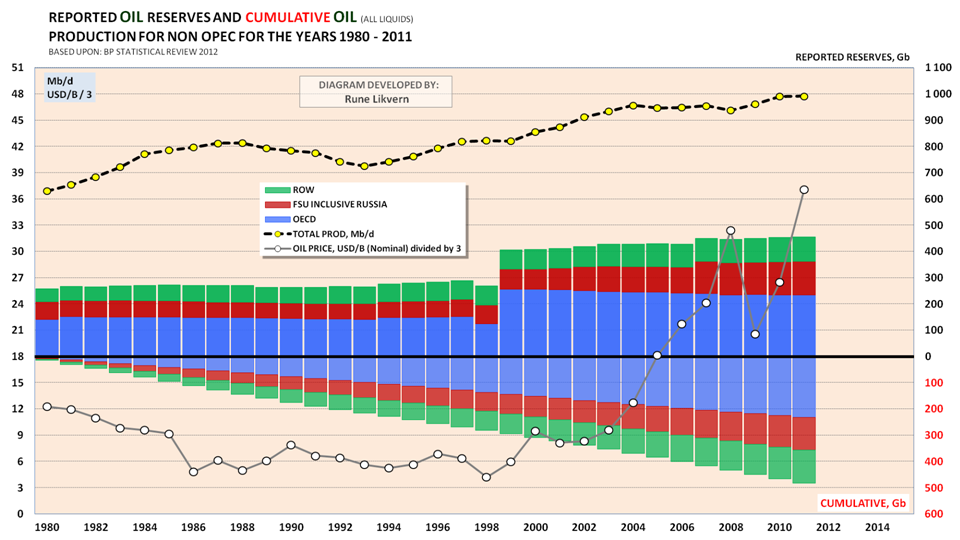 Fallet i reservene i 1998 for OECD skyldes i hovedsak nedrevideringen av reservene i Mexico. Veksten i reservene for FSU i 2007 kommer hovedsakelig fra Kashakstan. Sammenlignet med OPEC hadde OECD, FSU og ROW totalt høyere utvunnet og høyere årlig utvinning enn OPEC. Dette med en mye lavere reservebase.
