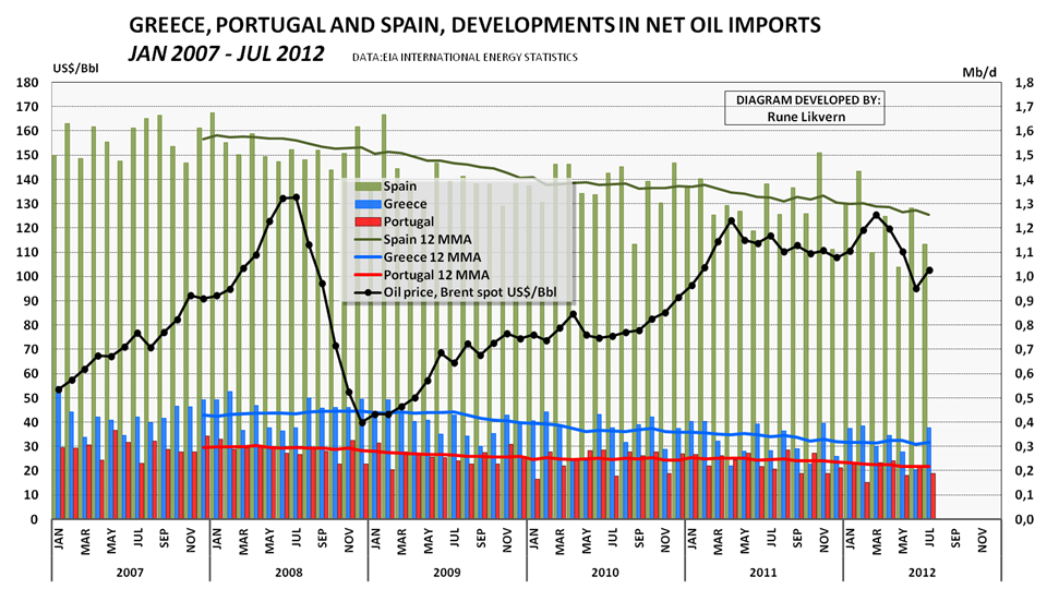 GPS (Greece, Portugal and Spain) landene har liten og ingen egen utvinning av råolje og må derfor importere omtrent alt sitt oljeforbruk.
