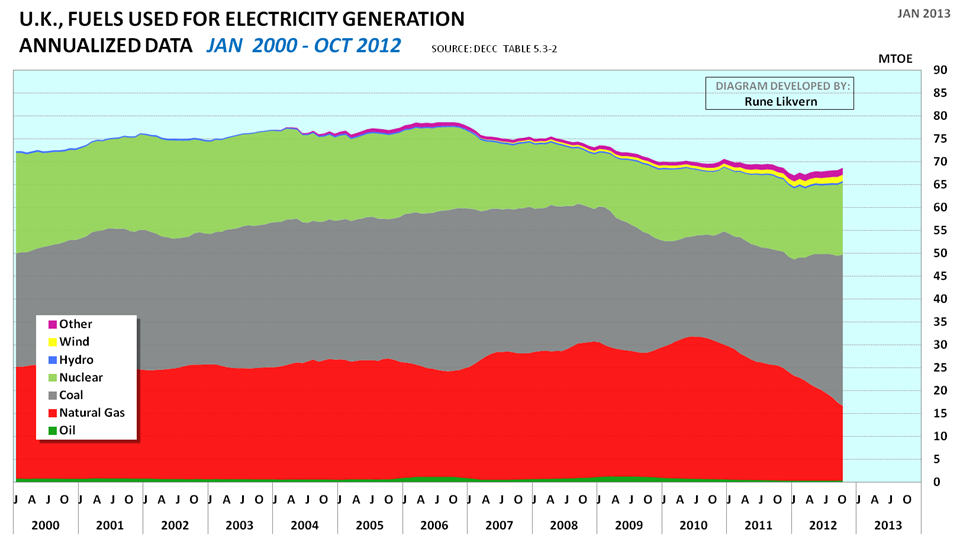 Etter at kull for elektrisitetsproduksjon i en periode hadde vist en nedagående trend snudde denne i 2010. I løpet av to år har det årlige kullforbruket for elektrisitetsproduksjon i Storbritannia økt med 50 %.