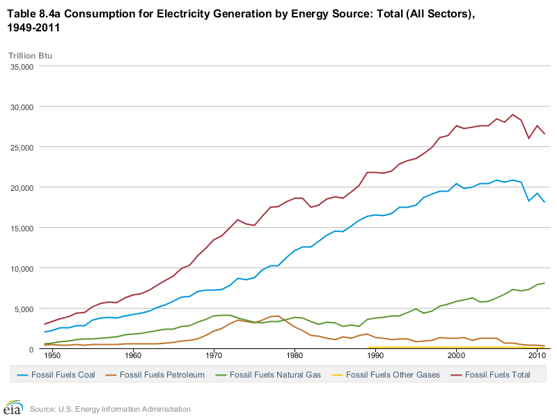 I USA resulterer nå lave naturgasspriser at noe kull i elektrisitetsproduksjonen blir erstattet med bruk av naturgass.