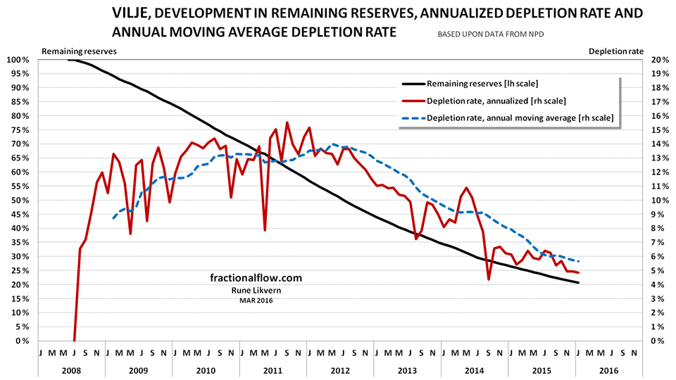 At end 2015 NPD estimated Vilje to have contained 84 Mb with original recoverable crude oil.