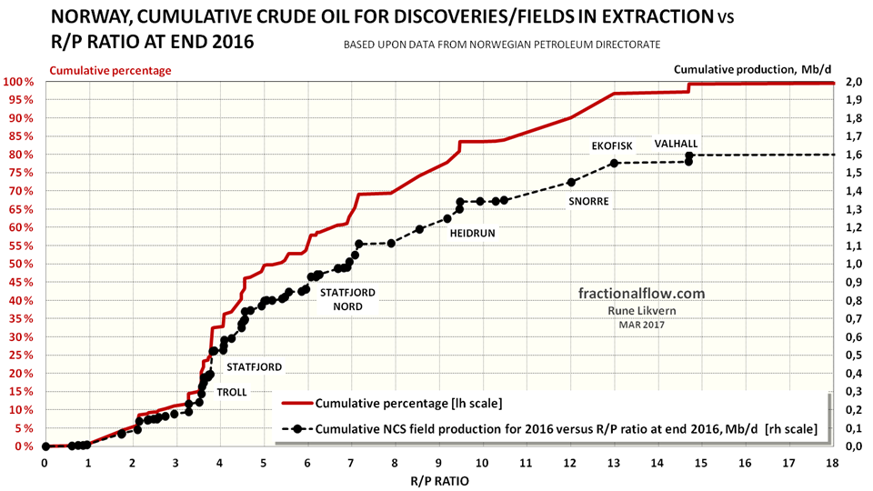 Sorting by R/P ratios and flows for 2016 an additional 5 fields were found to be likely candidates for shut in and P&A during the next 3-5 years. These contributed about 5 kbo/d in 2016.
