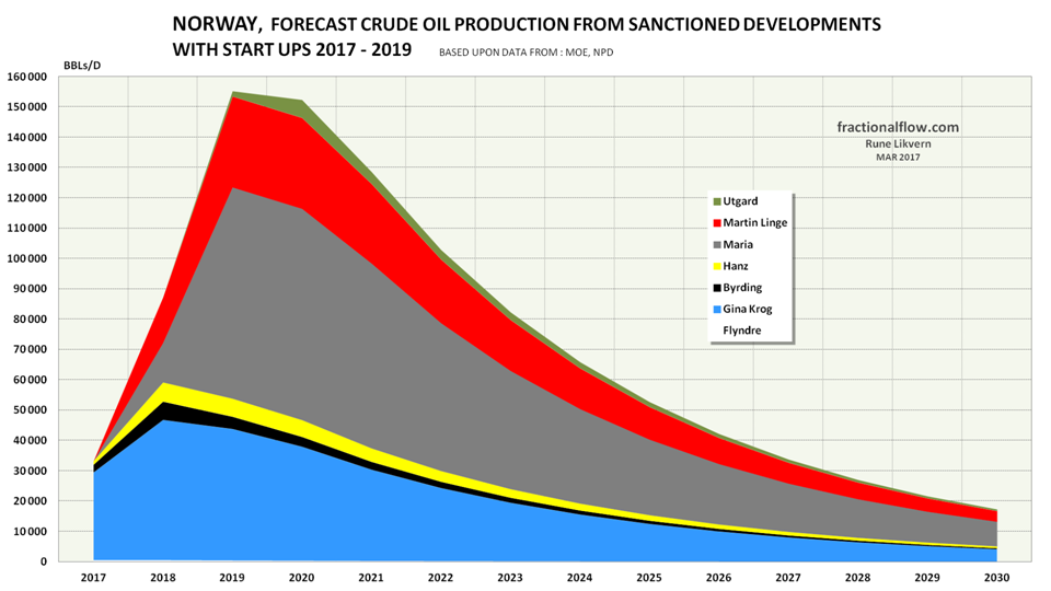 It is now expected that around 0.03 Mb/d (Mb; Million barrels) on an annual basis will be added during 2017 from start ups of sanctioned developments like Gina Krog, Flyndre, Hanz and Byrding.