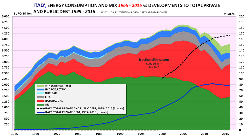 Generally, as debt growth slows and/or debt deleveraging sets in, energy consumption starts to decline.