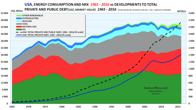 US total energy consumption more or less flattened between 2010 and 2016 while total debt grew by almost $10 Trillion, while oil and natural gas prices came considerable down. The debates to understand this are ongoing.