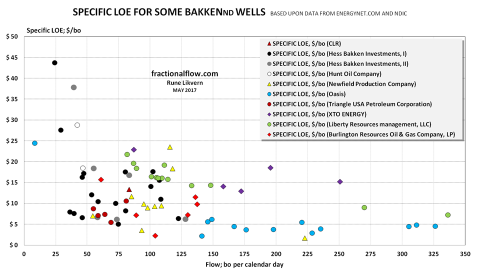 Unless otherwise stated the oil price [at the wellhead; at WH] used is for North Dakota Sweet (NDS), from Flint Hills. The spread used between WTI and NDS is $10/bo. Since January 2014 this spread has averaged close to $13/bo.