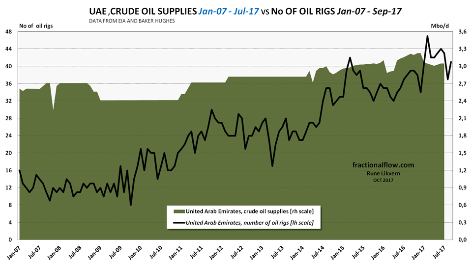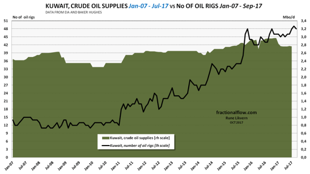 Looking at developments in oil supplies and the number of oil rigs, two OPEC members stood out, Kuwait and United Arab Emirates (UAE).