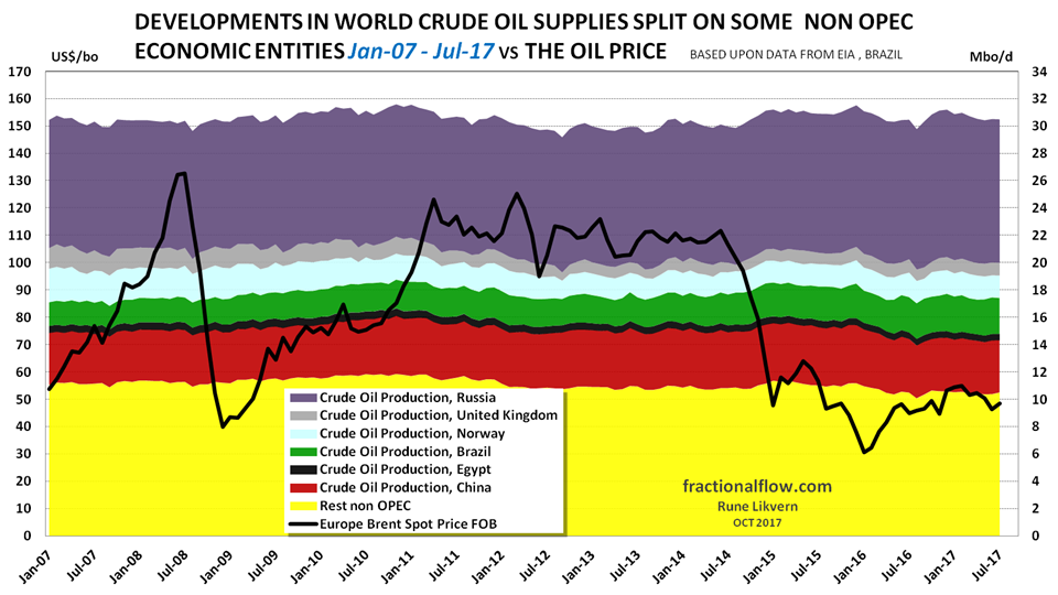 Non OPEC had a high of 47,0 Mbo/d in December 2015 and was down to 45,7 Mbo/d by July 2017.