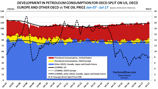 The OECD has about half of total global petroleum consumption and a major portion of the global petroleum stocks. - “It took a lot of costly oil to bring down the oil price. This is the magic from lots of cheap credit.”