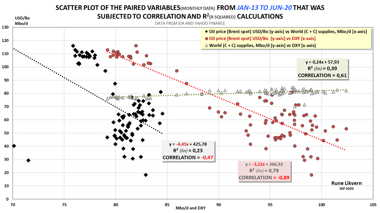 This article will focus on the associations between the oil price, oil supplies (crude oil and condensates; C+C), and the DXY.