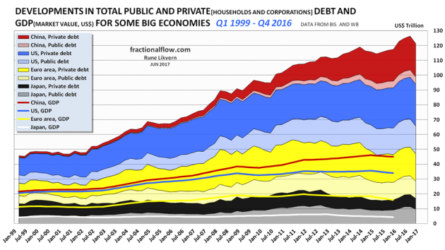 Debt expansions can go on until they cannot, as some economies already have experienced. In the recent decades, growth in total debt was higher than the growth in GDP (ref figure 1) and there is a strong relation between changes to total debt and GDP.